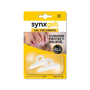 The Synxgeli Toe Crests cushion, protect and relieve soft tissue, bones and joints against unwanted stress, providing optimal comfort and pain relief for conditions such as hammer, claw or mallet toes, as well as blisters and calluses.