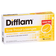 Difflam Sore Throat Lozenges provide antibacterial and anti-inflammatory action for fast relief from sore throat or mouth discomfort.