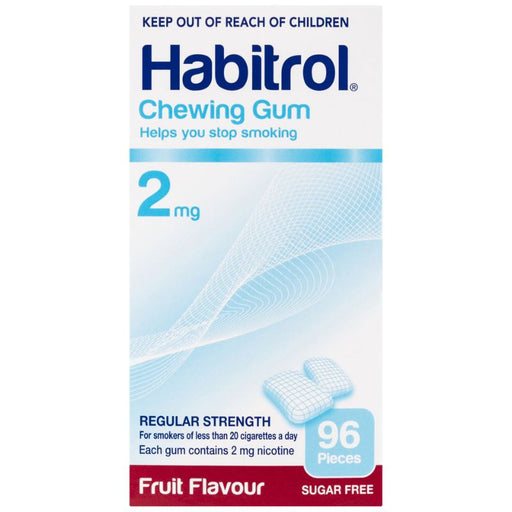 Habitrol 2mg Chewing Gum (Fruit) - 96pk Habitrol 2mg Fruit Chewing Gum is indicated for the relief of nicotine withdrawal symptoms in nicotine depe...