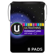 U by Kotex Ultrathins Overnight Long Pads - With Wings 8