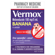 VERMOX tablets contain an ingredient called Merbendazole which is highly effective against threadworms. These tablets are easy-to-take and come as orange & chocolate flavoured tablets or banana flavoured liquid that kids love.