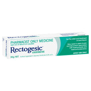 Rectogesic contains the active ingredient Glyceryl trinitrate 0.2% w/w in a smooth light amber ointment formulation for topical application.
